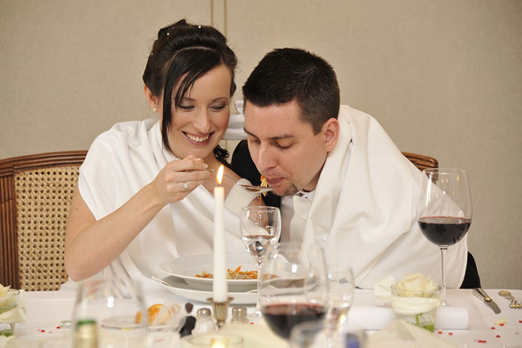 - Svatební hostina (rozbití talíře, házení kyticí, krájení dortu aj.)